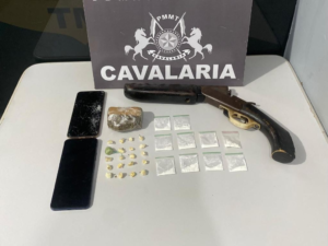Polícia Militar prende três homens com porções de pasta base e simulacro de arma de fogo