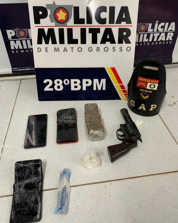 Policiais militares do 28º Batalhão apreenderam um revólver calibre 38, uma barra de