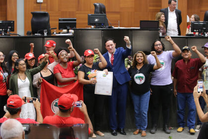 Idalice Nunes, coordenadora estadual do MST, dedicou a homenagem às mais de cinco mil famílias assentadas e 600 famílias acampadas em Mato Grosso. “É para quem faz a luta pela terra, para quem está debaixo da lona preta, já está nos assentamentos produzindo alimentos, alimentos com qualidade, saudáveis, nessa transição do convencional para a agroecologia”, ressaltou.